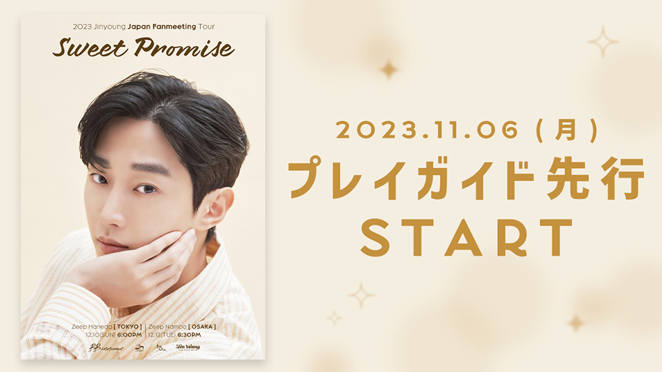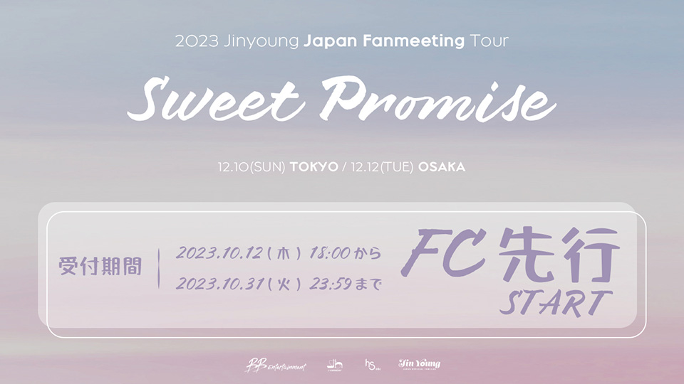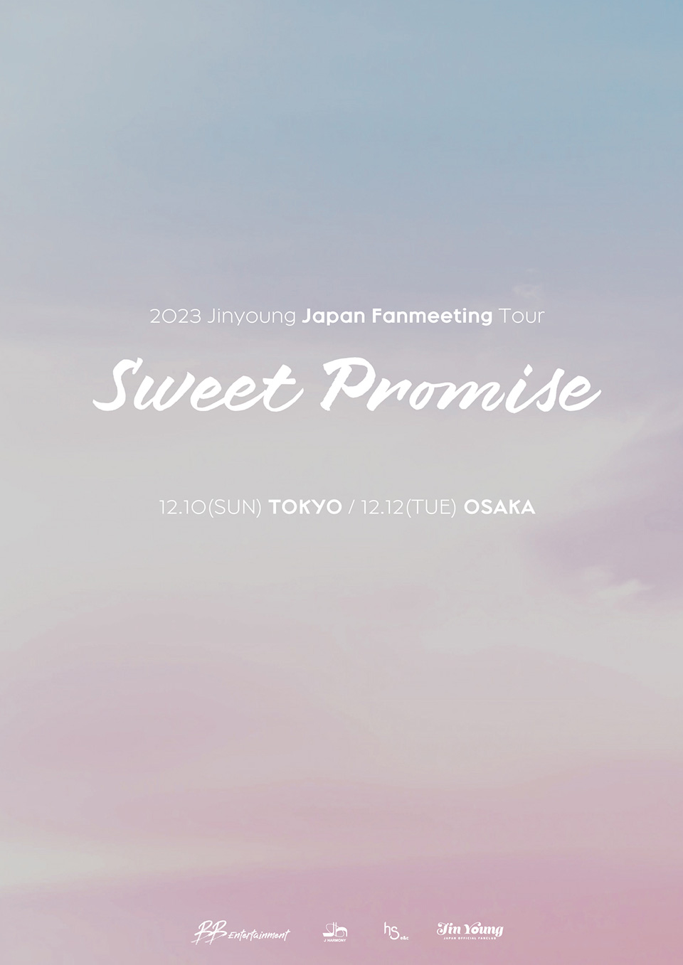 12月10日(日)と12月12日(火)に東京・大阪にて開催される2都市Zeppツアー「2023 Jinyoung Japan Fanmeeting Tour 〈SWEET PROMISE〉」チケット一般販売(先着)開始のお知らせです。