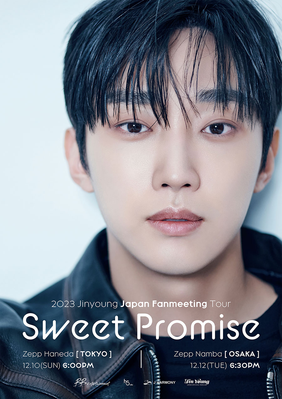 2023年12月10日(日)と12月12日(火)に東京・大阪にて開催される2都市Zeppツアー「2023 Jinyoung Japan Fanmeeting Tour 〈SWEET PROMISE〉」ジニョンの新ビジュアルポスターが公開されました!!